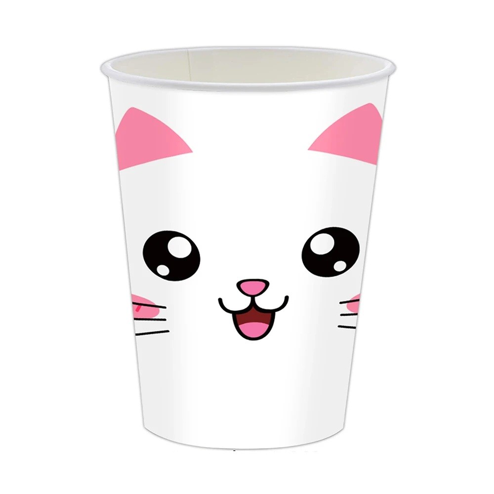 Paper party cups featuring a cat face design are a charming addition for children's birthday parties or themed events. The simple design adds a playful touch to the festive table.