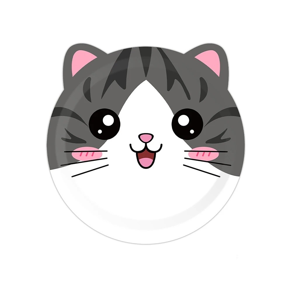 10 Pack Paper Party Plates 19 × 19 cm Tabby Cat Head Shaped Disposable Birthday Plates for Children's Party