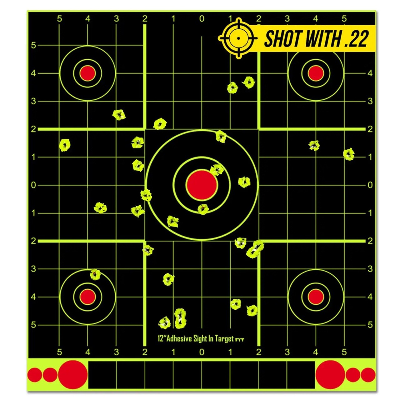 Reflective self-adhesive shooting targets are the perfect tool for anyone looking to effectively train their shooting accuracy and have instant feedback on results. Thanks to a special layer, the black surface changes to a bright phosphorescent yellow upon impact, allowing for easy verification even at greater distances. The targets are suitable for both indoor and outdoor use, and with the self-adhesive backing, they can be easily affixed to various surfaces. The square format with five circular targets supports variable training and the development of shooting skills. This product is appreciated by both beginners and advanced shooters during regular practice.