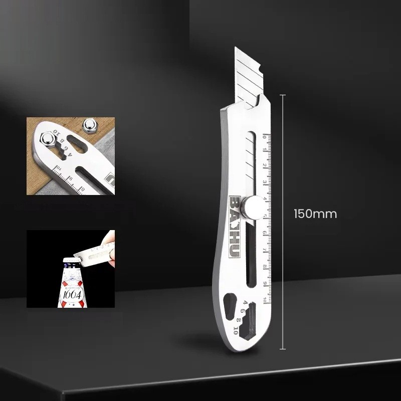 This knife combines functionality, durability, and versatility. Precise blade adjustment allows for comfortable and safe cutting. With practical integrated tools, it can handle not only cutting but also screwing or opening containers. The sturdy metal body ensures resilience in any environment. An ideal choice for DIY enthusiasts, technicians, and everyday users who want one tool for everything.
