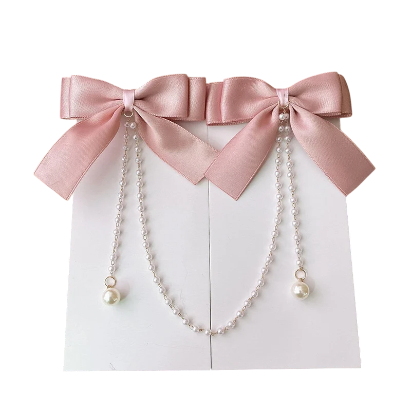 Home page Home page Clothing & Accessories Women’s Clothing Women’s Accessories Hair Accessories Hair Clips & Barrettes 2 pcs Hair Clips with Pink Chiffon Bows 10 x 8 cm Pearl Chain 30 cm Elegant Hair Accessories Romantic Hair Decorations