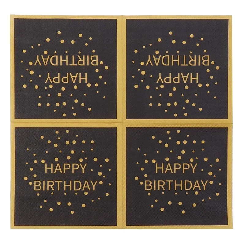 20 Pack Paper Napkins 33 x 33 cm Birthday Design Black Gold 2 Layers Food Safe Water-Based Ink
