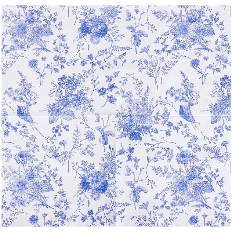 20 pcs Paper Napkins Blue Flowers Porcelain Style 33 x 33 cm 2 Layers Natural Water-Based Ink Festive Dining