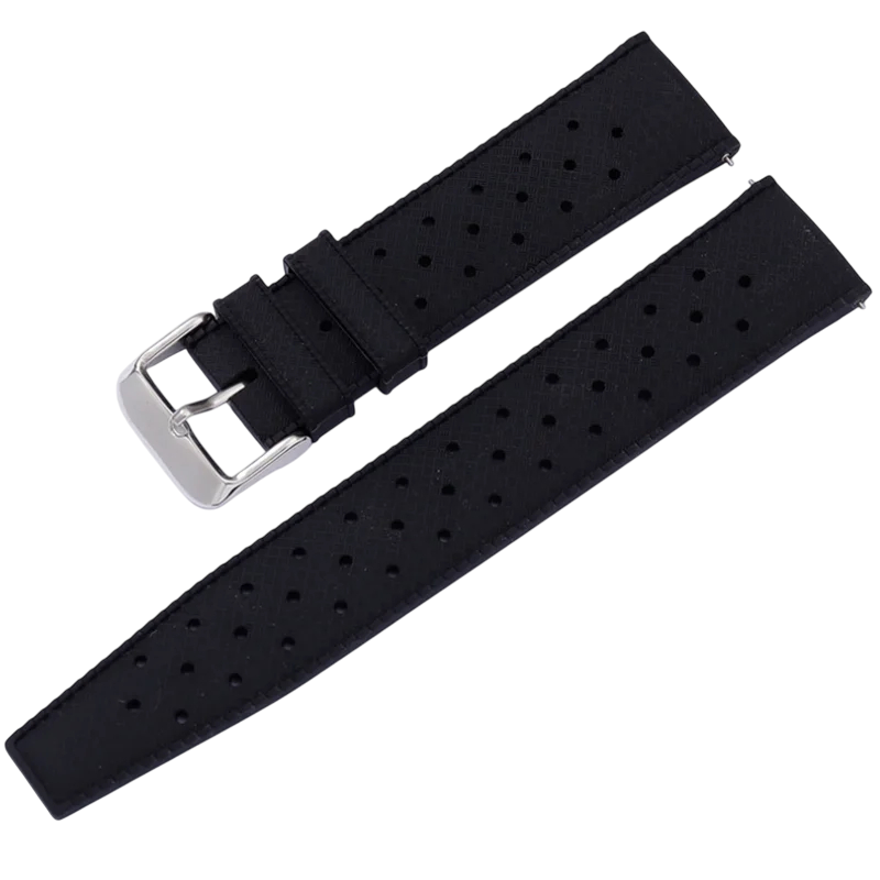 This silicone strap with a width of 22 mm is designed for users of Oris, Seiko and Citizen watches who are looking for a practical, comfortable and durable alternative to traditional diving straps. The tropical style is based on the proven design of historical diving straps, characterised by high flexibility, breathability and resistance to everyday use. The silicone material is waterproof, flexible and pleasant to wear, making it suitable for both everyday wear and sports activities or swimming. The combination of classic appearance and modern materials ensures that the strap looks elegant yet functional. It is designed to securely hold on the wrist and provide maximum comfort during all-day wear.