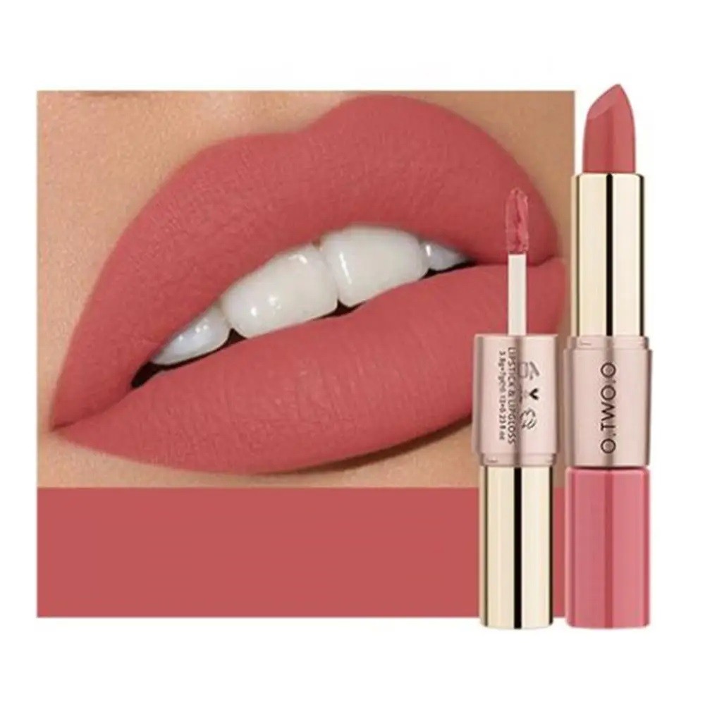 2in1 Waterproof Matte Lipstick with Long-Lasting Gloss Lipstick Stick