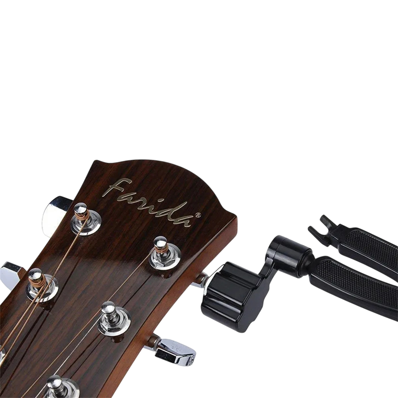 Universal 3-in-1 tool for guitarists – easily winds, cuts, and removes pins. An ideal assistant for changing strings on a guitar. Full description