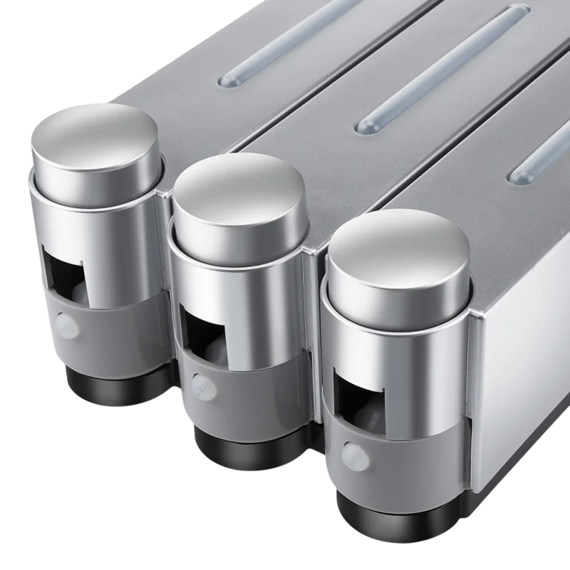 This trio of dispensers is ideal for households and commercial spaces where a high level of hygiene and organised liquid storage is required. Their sturdy construction and stable attachment ensure long-term use without the risk of loosening. With their elegant and neutral appearance, they blend easily into any type of interior. The use is quick and intuitive, making them suitable for children or seniors. The dispensers contribute to a clean and organised environment where everything needed is always at hand.