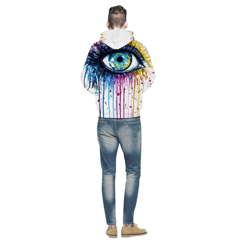 The hoodie featuring an intriguing 3D print of a human eye will delight both men and women.