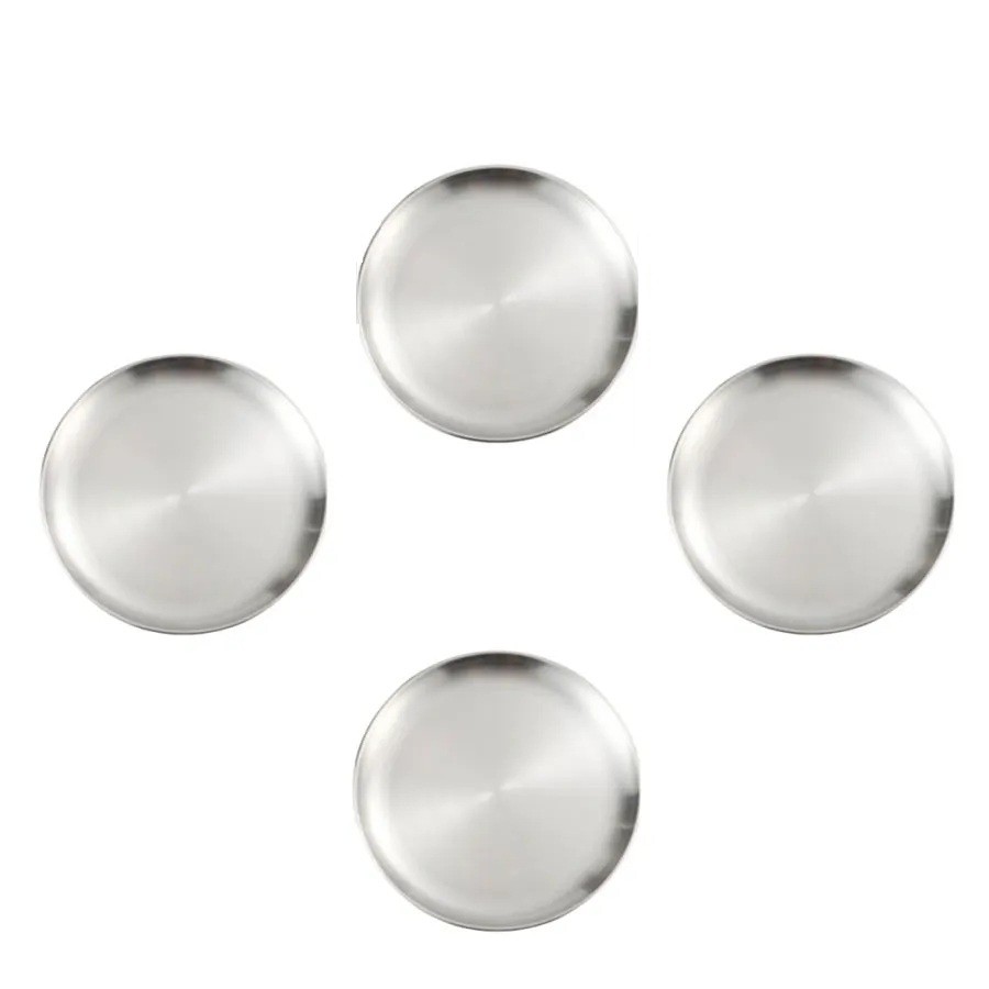 Home page Home page Home & Household Supplies Kitchen Dining Plates 4 pcs Stainless Steel Plates 23 cm Silver Kitchen Plates Round Serving Dish for Main Meals and Everyday Use