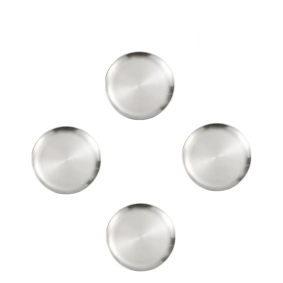 The plates are made from stainless steel, which ensures high durability, strength, and long life even with frequent use. The surface is smooth and easy to clean, significantly simplifying maintenance after each meal. The silver colour gives dining an elegant and timeless appearance. The round shape allows for convenient stacking and space-saving in the kitchen.