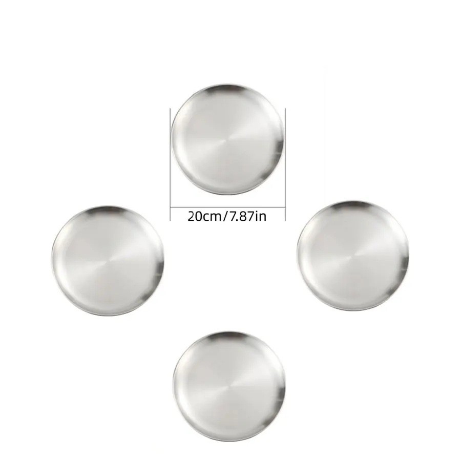 4 Piece Set of 20 cm Stainless Steel Silver Kitchen Plates for Main Meals, Serving and Everyday Dining