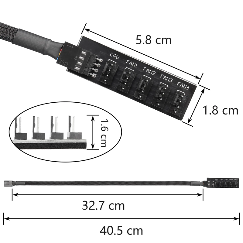 - 1 to 5 Hub for 4-Pin Fans – easy connection of multiple coolers to a single source