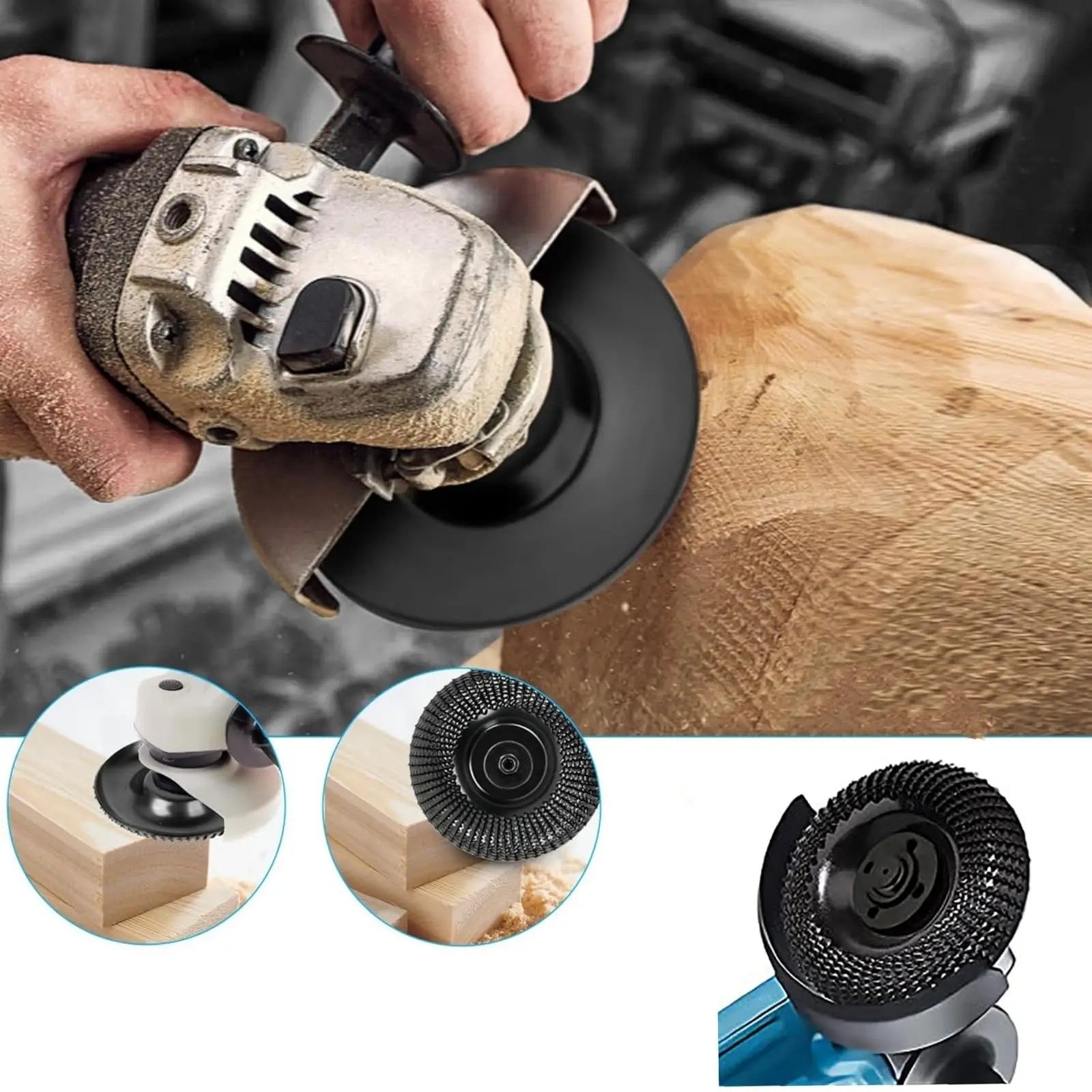 Home page Home page Hobbies & Garden Tools Hand Tools 4" Wood Grinding Disc with Carbide Surface Angle Grinder Shaping Grinding Carving Disc with 22 mm Hole