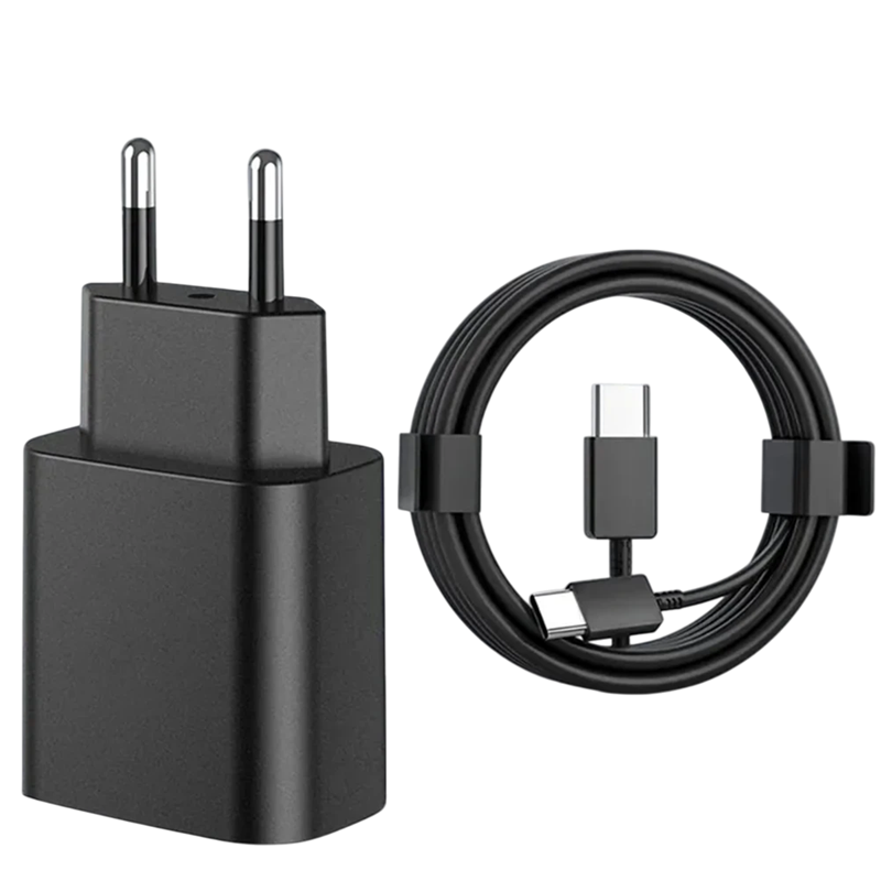 Powerful fast charger with a power output of 45W, PD support, dual USB C cable 1 m, EU plug, and super fast charging 5A. Full description