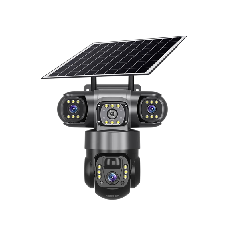 4G Solar Security Camera 15MP with 10× Zoom, Night Vision and Person Detection Black Outdoor Camera with Three Lenses for Surveillance