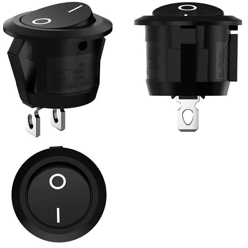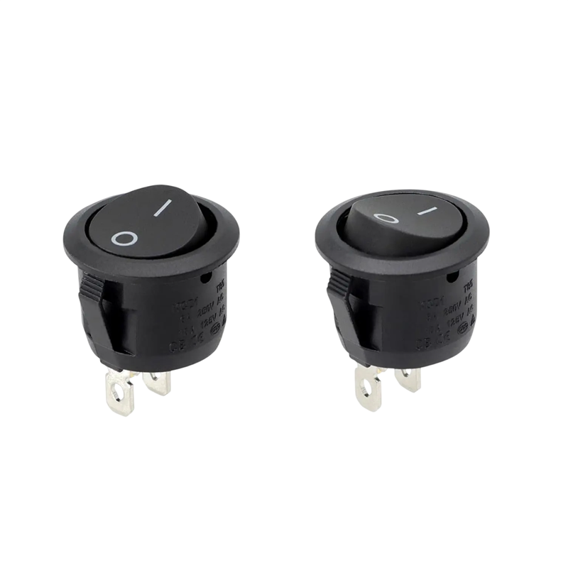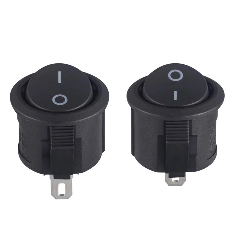 This set contains 5 high-quality black rocker switches designed for various electrical installation uses. Each switch has a capacity of 3A at 250V AC or 6A at 125V, ensuring sufficient reliability and safety for common applications. Installation is very straightforward, as the switches have an installation hole of approximately 15 mm, allowing for easy integration into most devices. These switches are ideally suited for home electronics, lighting, and other electrical devices where easy control of on and off is required.