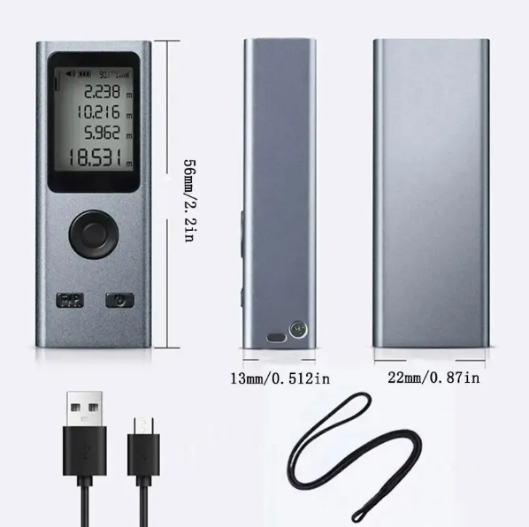 50 m Laser Distance Measurer with USB Charging, Accuracy and 8 Measurement Modes