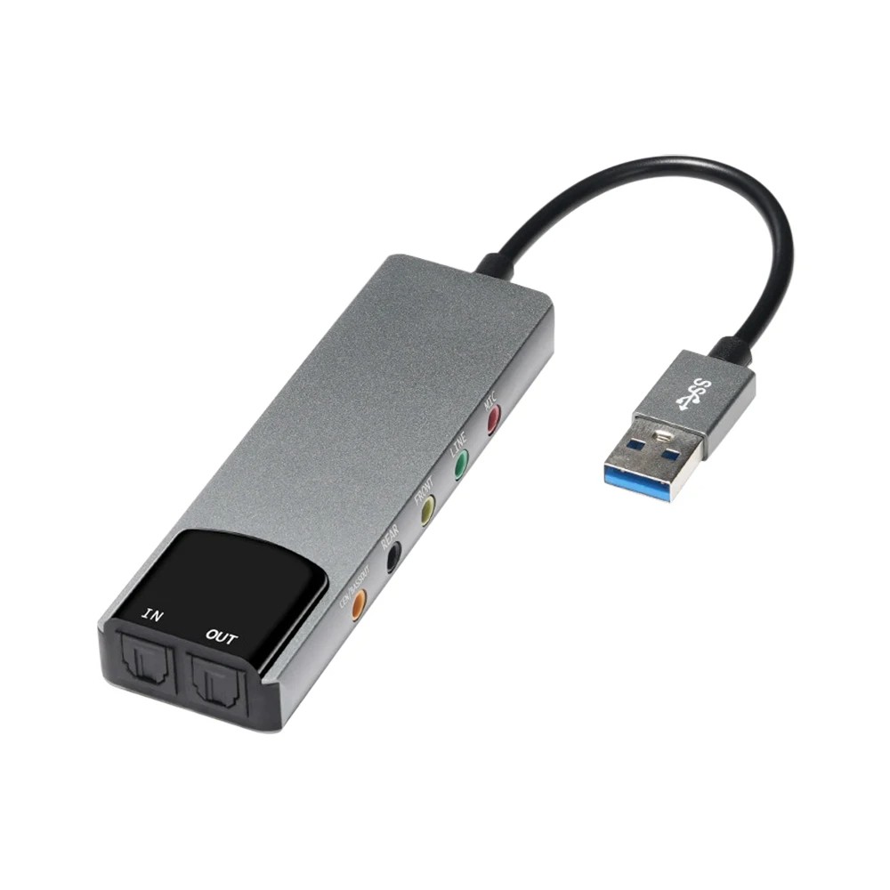 6-in-1 USB External Optical Sound Card Aluminium Audio Adapter for Laptop Microphone Headphones Stereo Output Multi-channel Converter