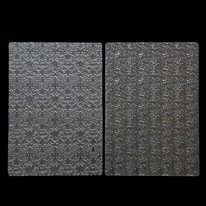 Stencils with delicate ornamentation suitable for decorating with chocolate or marzipan.