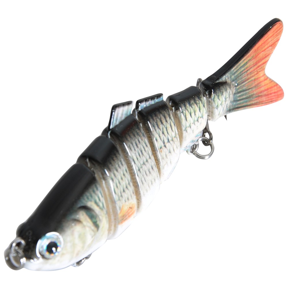 The six-segment fishing lure features 3D realistic eyes and a body resembling a real fish.