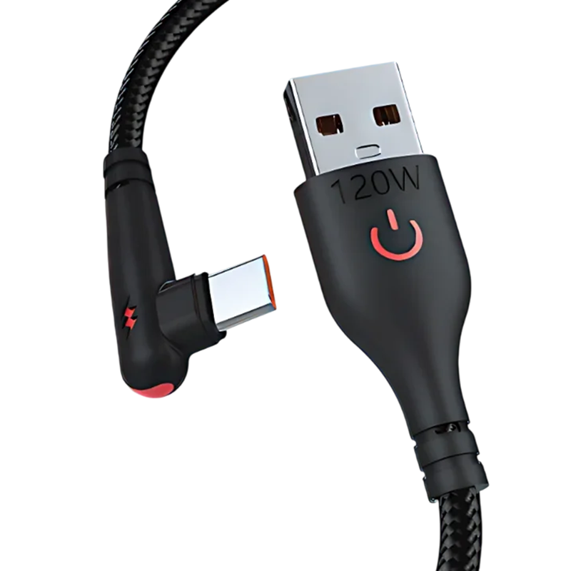 90-Degree Fast Charging Cable USB-C and USB-A 1.5 m Fast Charging 6A 120W Durable Connector Charging Cable Phone Accessory