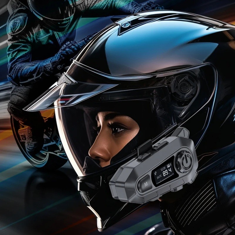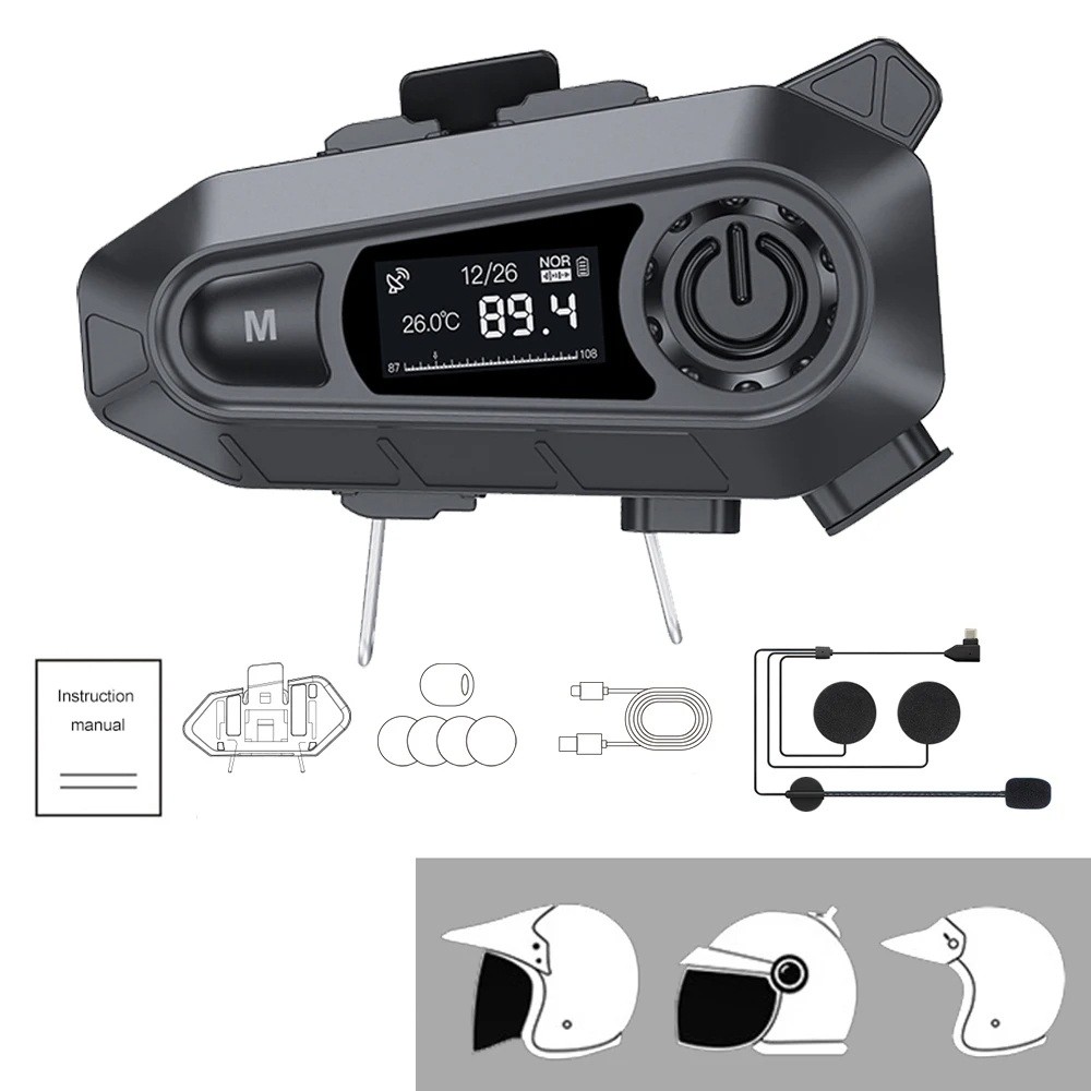 A1 Motorcycle Headset with Display BT 5.3 Hard Mic FM Radio IPX6 1000 mAh Touch Volume Lasting up to 48 h for Open Helmets