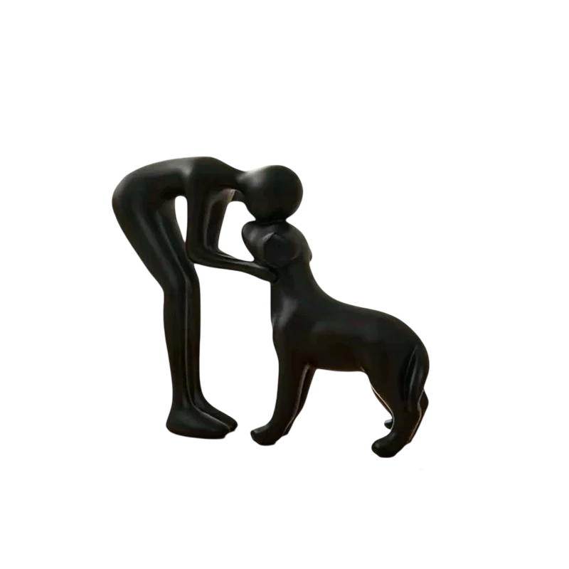 Abstract plastic figurine featuring a man and dog. A modern artistic accessory for your interior, ideal for art lovers and unique decorations. Full description