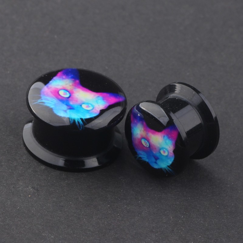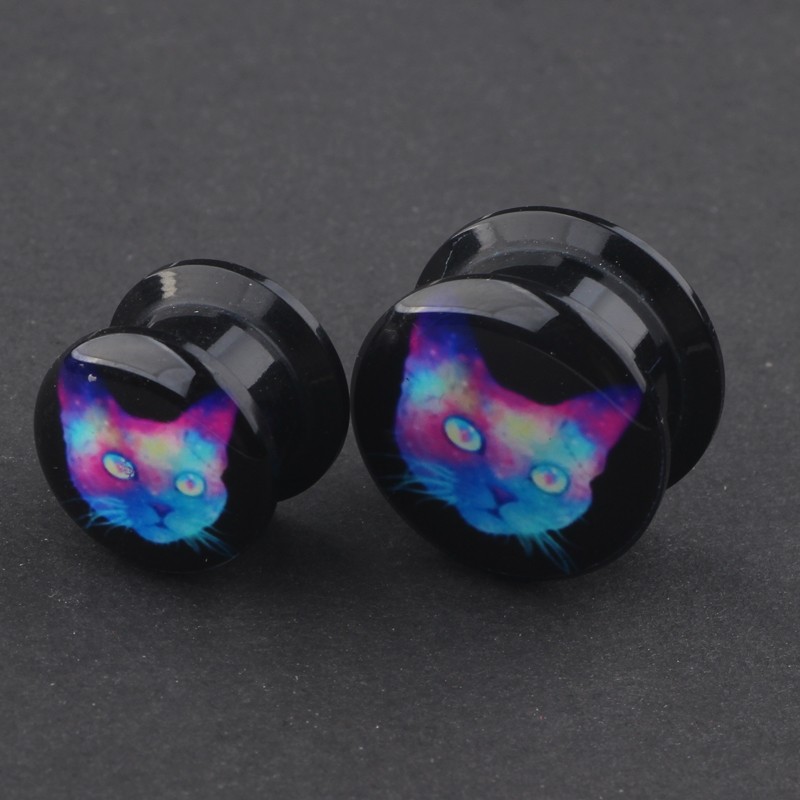Acrylic screw plug with a holographic cat.