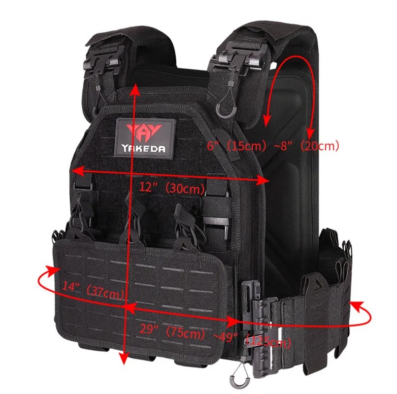Durable tactical vest with removable inserts, adjustable waist and shoulder circumference, quick release, and hidden pockets for professional and hobby use. Full description