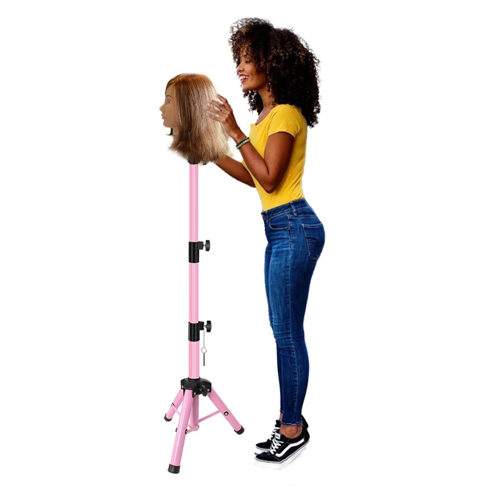 This adjustable wig stand is the perfect solution for professional use in beauty salons. With the ability to extend up to 140 cm, it provides flexibility when working with wigs and other fashion accessories. The rotating top allows for easy handling and adjustment of the wig for various tasks, whether it be styling, maintenance, or display. This tripod is made from high-quality stainless steel, ensuring durability and stability. With a solid base, the stand is very stable, keeping your wigs securely in place throughout use.