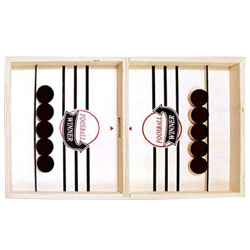 This game is ideal for two players, who can enjoy hours of thrilling competition. The game set is made from durable wood, measuring 35 x 22 x 2.5 cm and includes all the necessary components for an exciting one-on-one match. Enjoy a fast-paced game where you compete with your opponent for points.