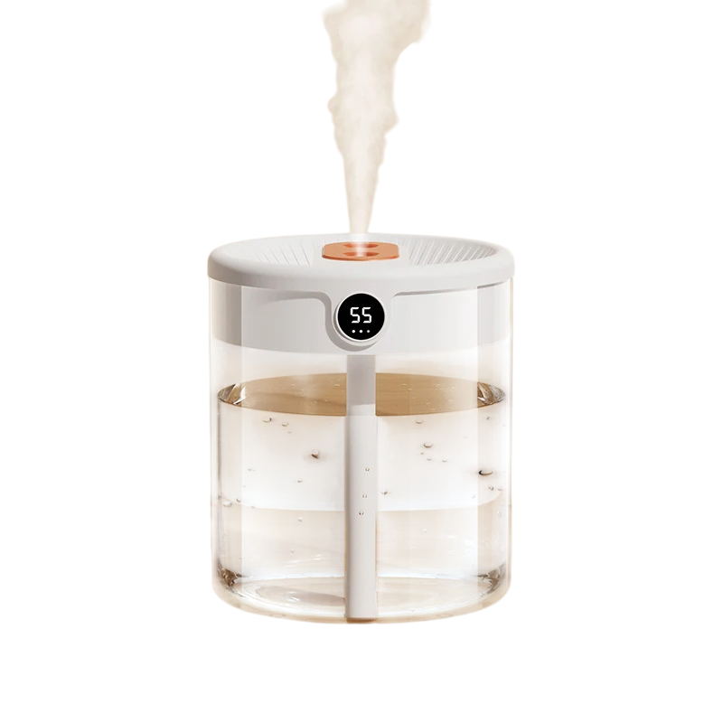 Compact ultrasonic humidifier with a capacity of 2 litres, quiet operation, and a modern display, ideal for smaller rooms or offices. Full description