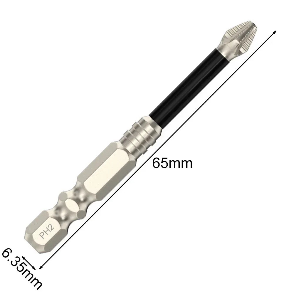 Anti-slip PH2 Bit 65 mm with Reinforced Core and Grooved Head for Precise Screwdriving Without Damaging the Screw Head