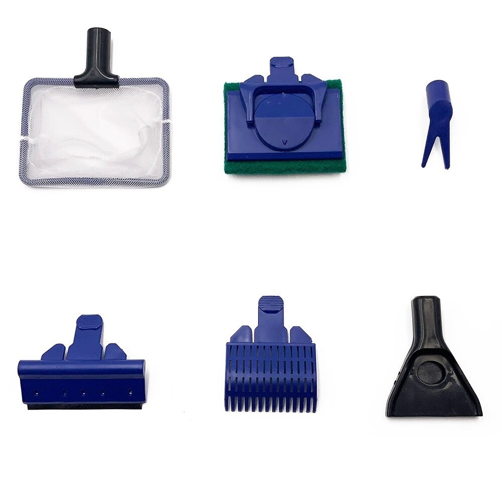 This cleaning set should not be missing from your aquarium kit. It is very easy to use and install. The attachments can be changed as needed. You will find 5 attachments for thorough cleaning, such as a scraper, gravel rake, and fish net.
