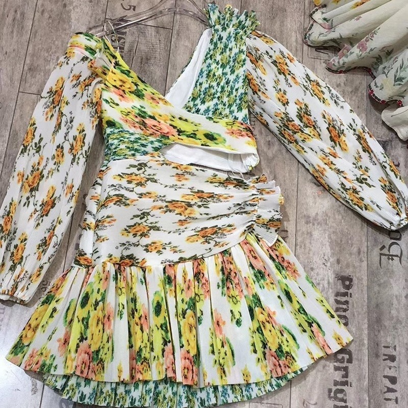 Women's mini dress with frills! Unusual asymmetrical cut.