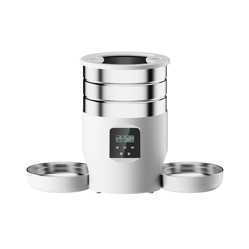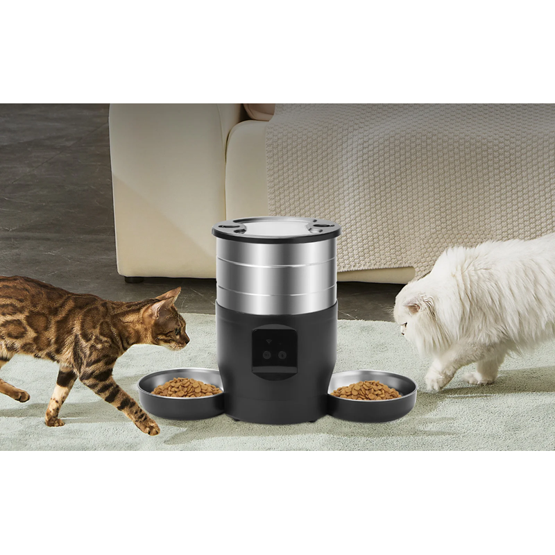 Home page Home page Pet Supplies Cat Supplies Cat Bowls & Fountains Cat Bowls Automatic Pet Feeder for Dogs and Cats 4.5 L with Display 19 x 28 cm Two Stainless Steel Bowls Mains and Battery Powered Programmable Feeder