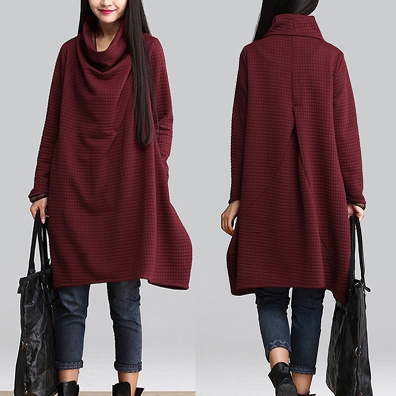 Warmer autumn dress with long sleeves and a roll neck.