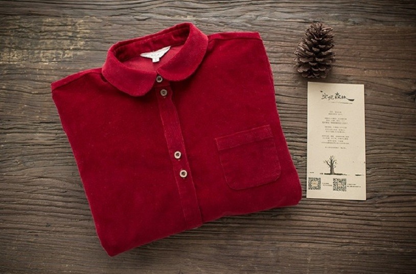Long roll-up sleeves. Coat style with a collar.