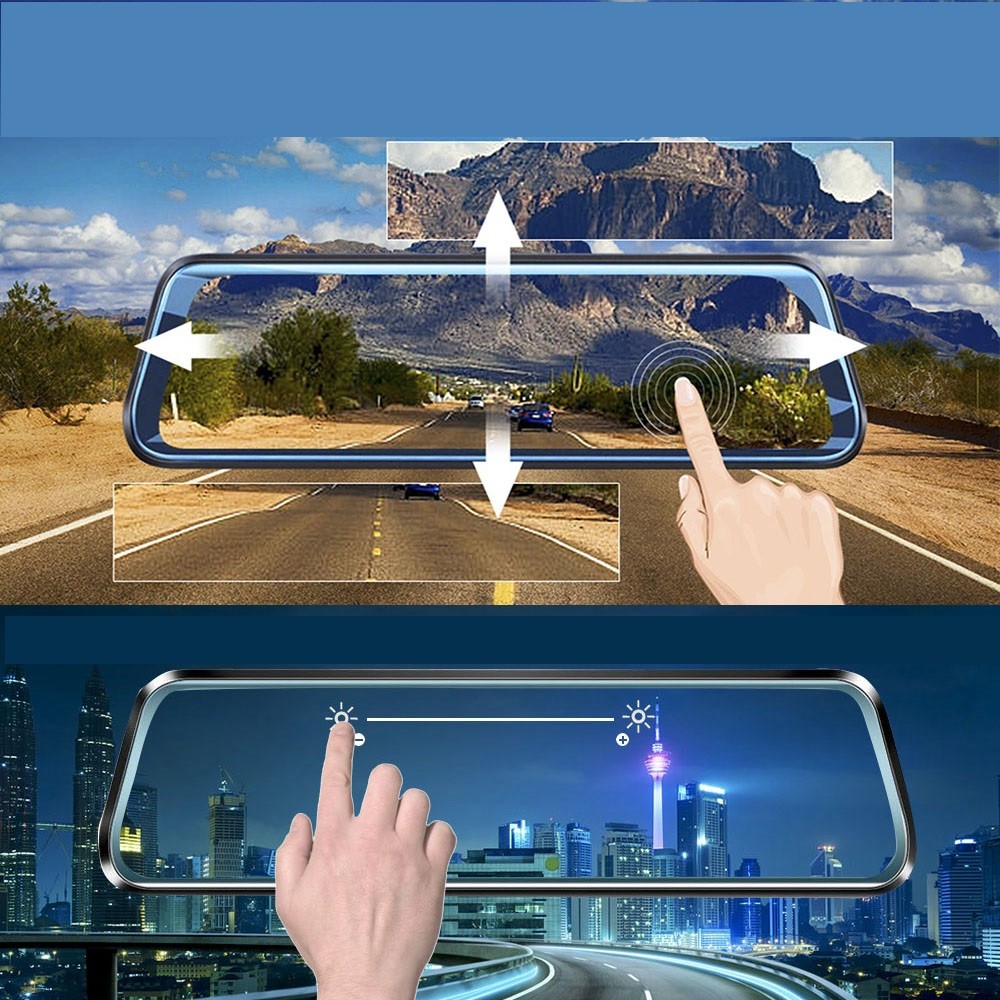 Package Contents: 1x front dash cam in mirror, 1x rear dash cam