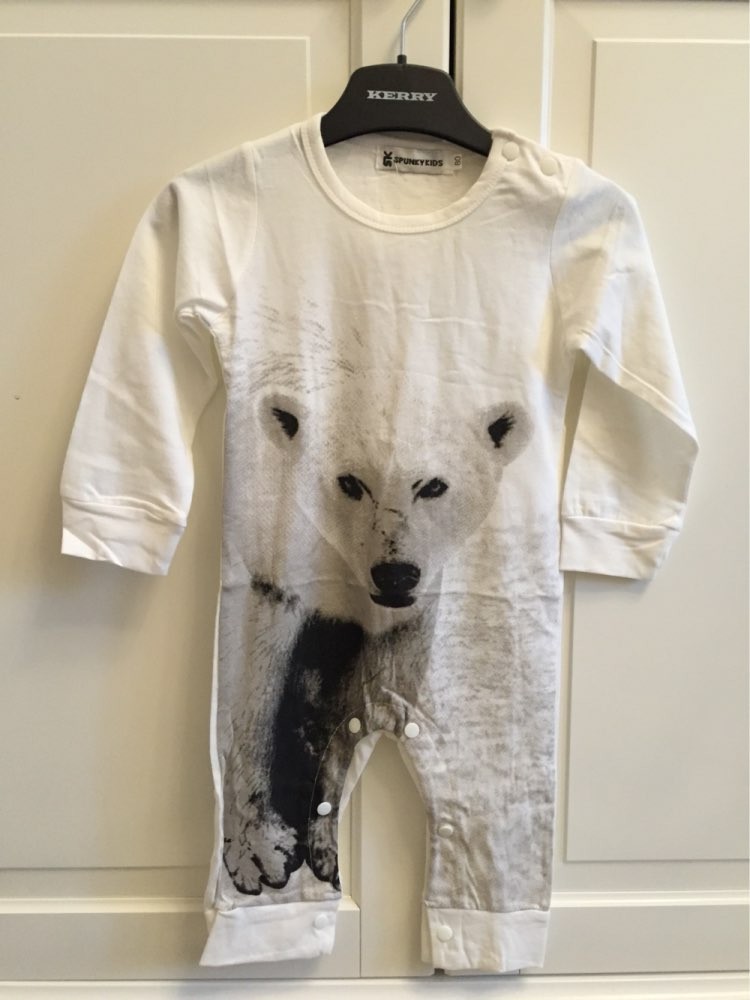 Beautiful baby overall with a 3D print of a polar bear that looks just like the real thing will really suit your child.