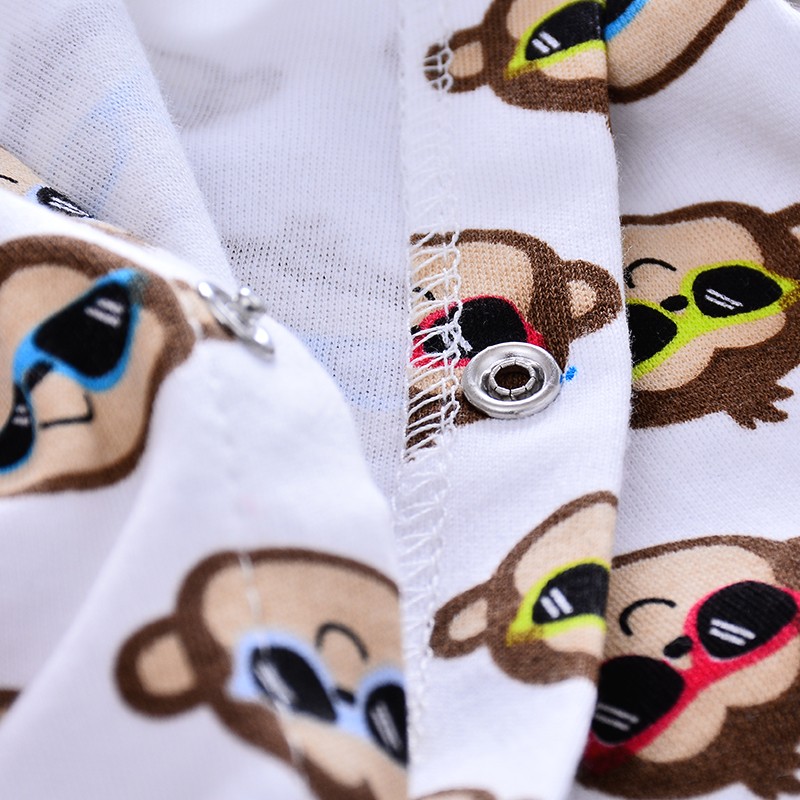 Choose this cotton overall with a monkey cartoon print that your child will love.