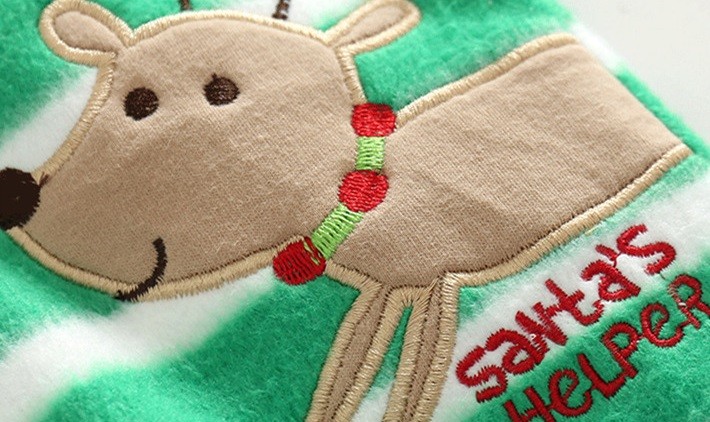Beautiful striped overall with a print of a little reindeer.