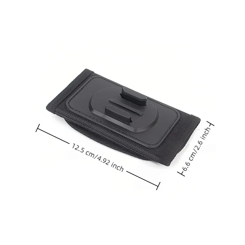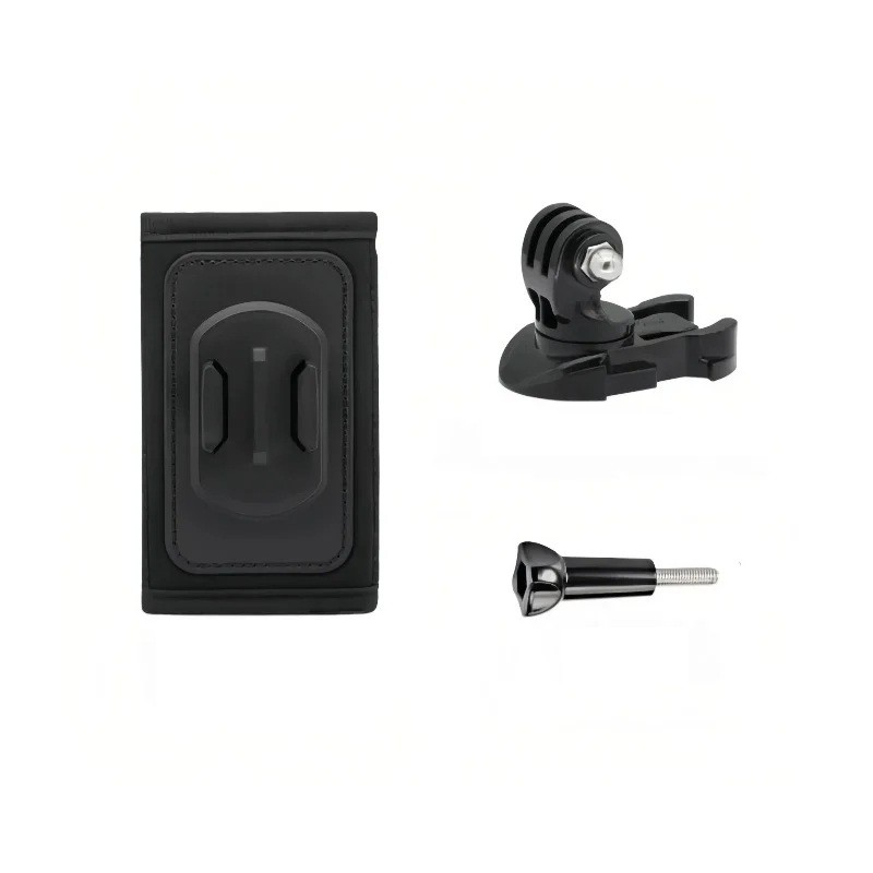 The shoulder mount for action cameras is designed for attachment to a backpack strap or shoulder strap, allowing comfortable shooting from the user's natural perspective. Thanks to its secure attachment, the camera remains stable even when walking or in dynamic movement. The durable material construction ensures long-lasting performance and reliability during outdoor activities. The rotatable base allows for flexible camera angle adjustments as needed. The mount is suitable for a wide range of action cameras from various brands.