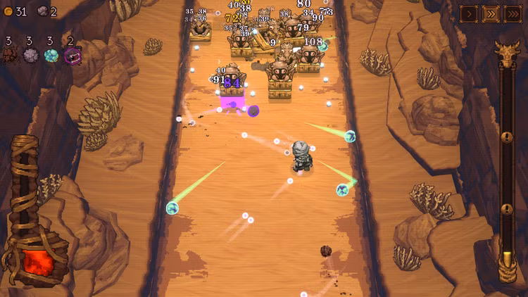 Face legions of diverse enemies in the pit and fight your way through desolate deserts, frozen caves, wild forests, and other obstacles. Each area offers its own unique set of dangers in addition to hordes of increasingly challenging foes and powerful bosses that fill the entire screen.