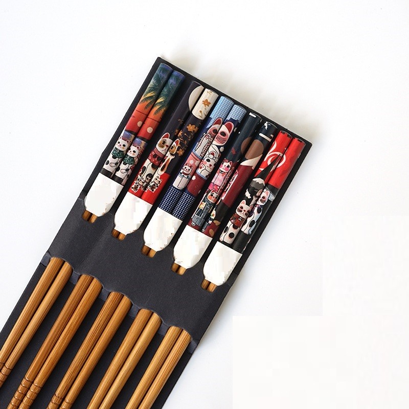 Bamboo Chopsticks with Cats 5 Pairs