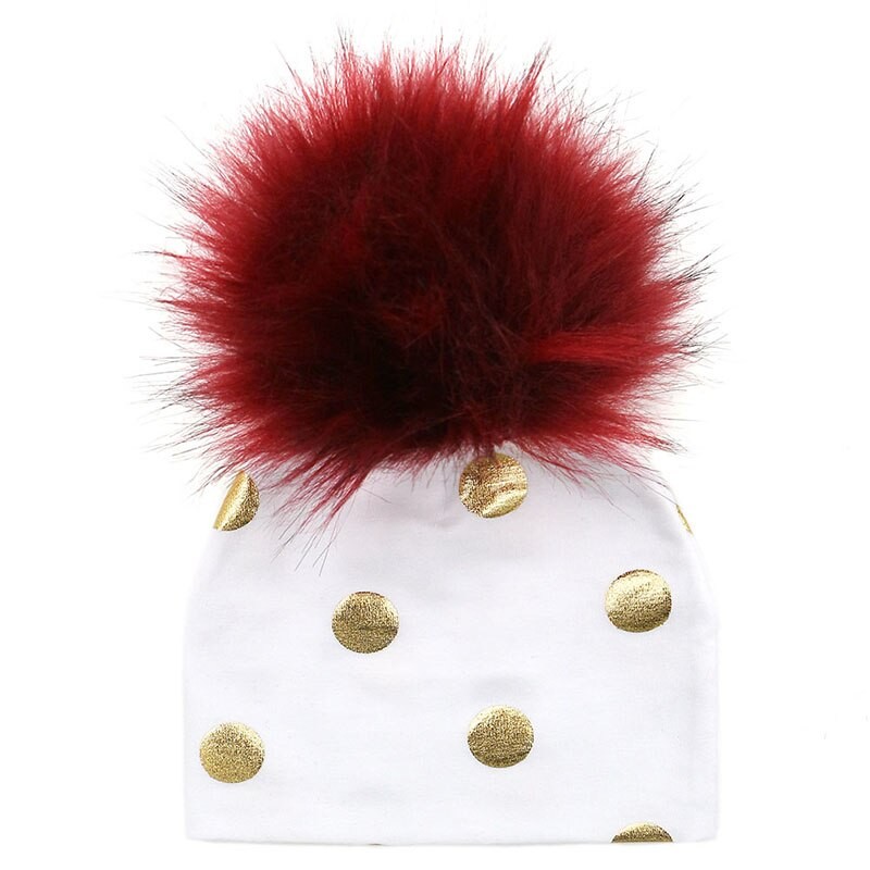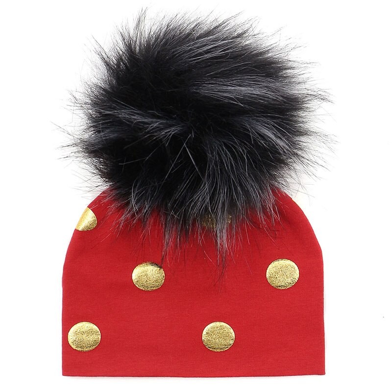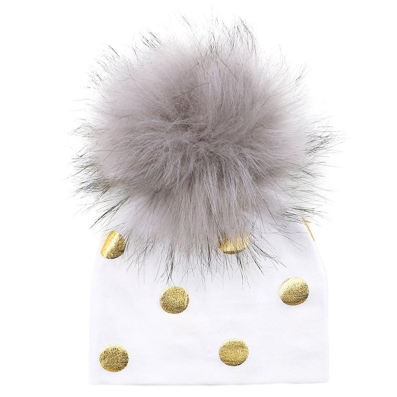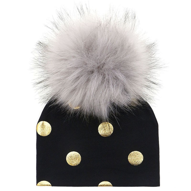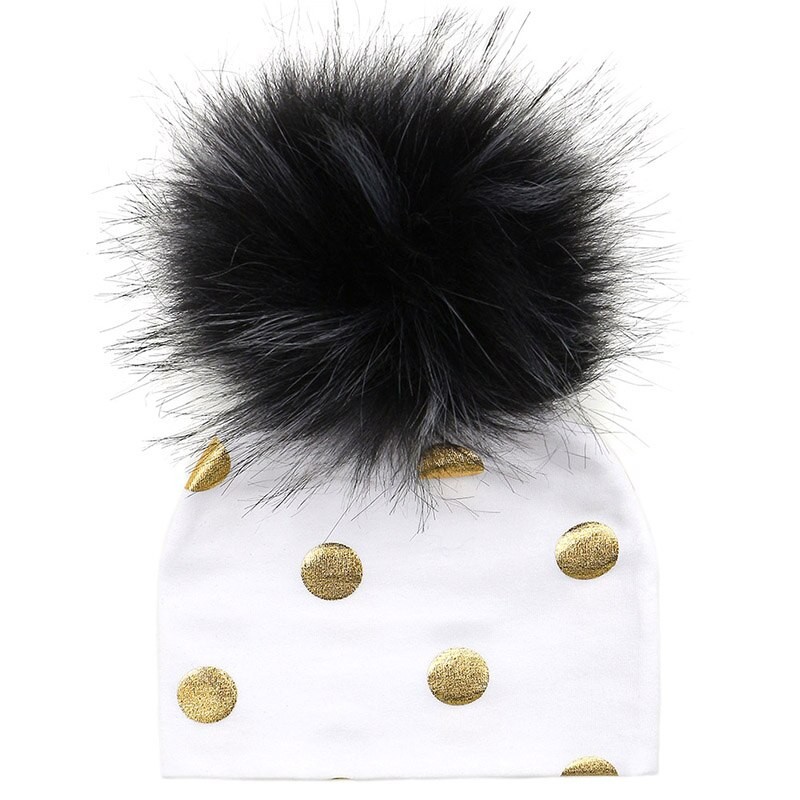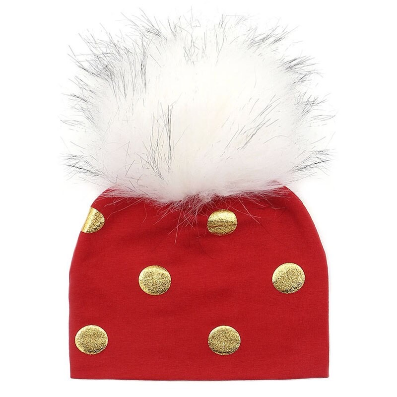 Cotton children's hat with gold polka dots.