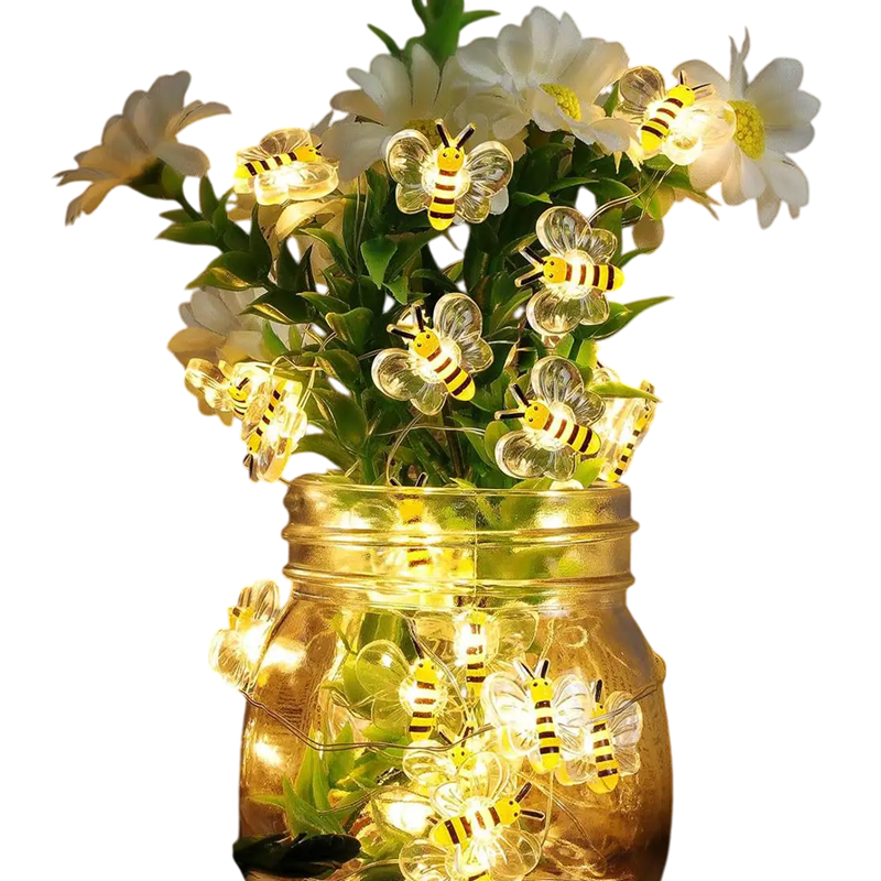 Add a touch of originality to your interior and outdoor space with these bee string lights. The warm white light creates a pleasant atmosphere and adds a delicate and cosy touch to your decor. Thanks to the battery power, you can place them anywhere without relying on a socket, allowing for unlimited arrangement possibilities. Length 2 metres and 20 LED bulbs provide ample light for decorating windows, furniture, pergolas or gazebos. The original bee motif is playful yet elegant, making it suitable for any occasion – from romantic evenings to wedding decorations and Christmas festivities.