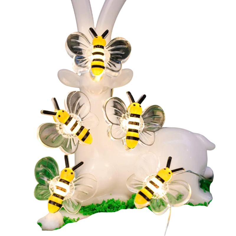 Original LED lights in the shape of bees with warm white light for a cosy atmosphere at home and outdoors, ideal for celebrations, weddings, and seasonal decorations. Full description