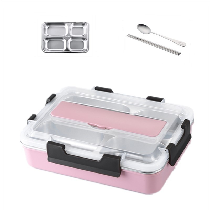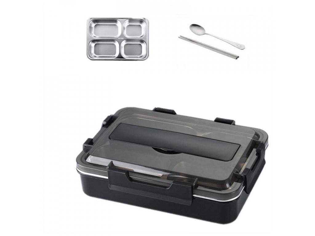 The box has a stainless steel tray inside.