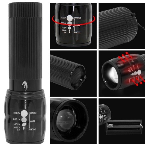 Light powered by 3 AAA batteries.